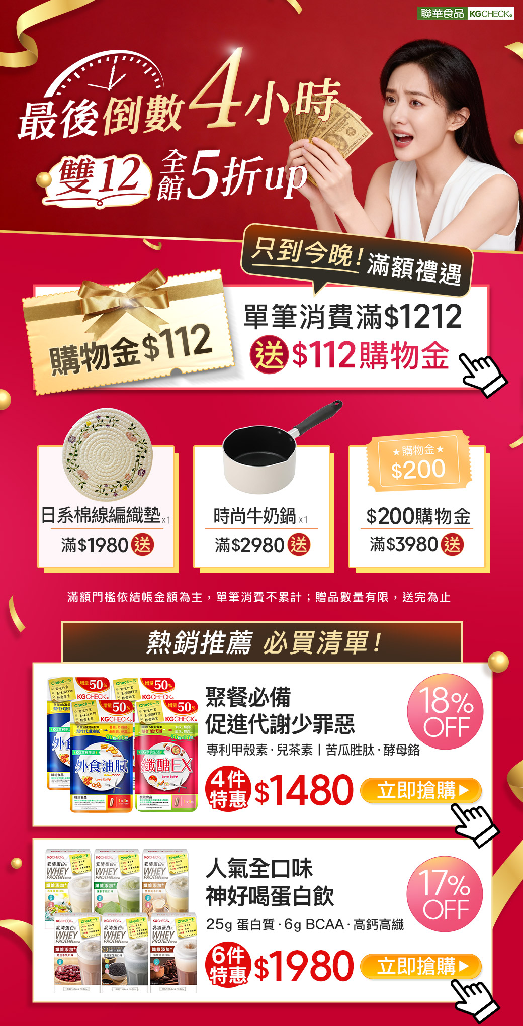 恭喜您符合條件.ᐟ.ᐟ滿$1212\送$112購物金.ᐟ.ᐟ/雙12全館6折起~滿足您的健康需求 ▷