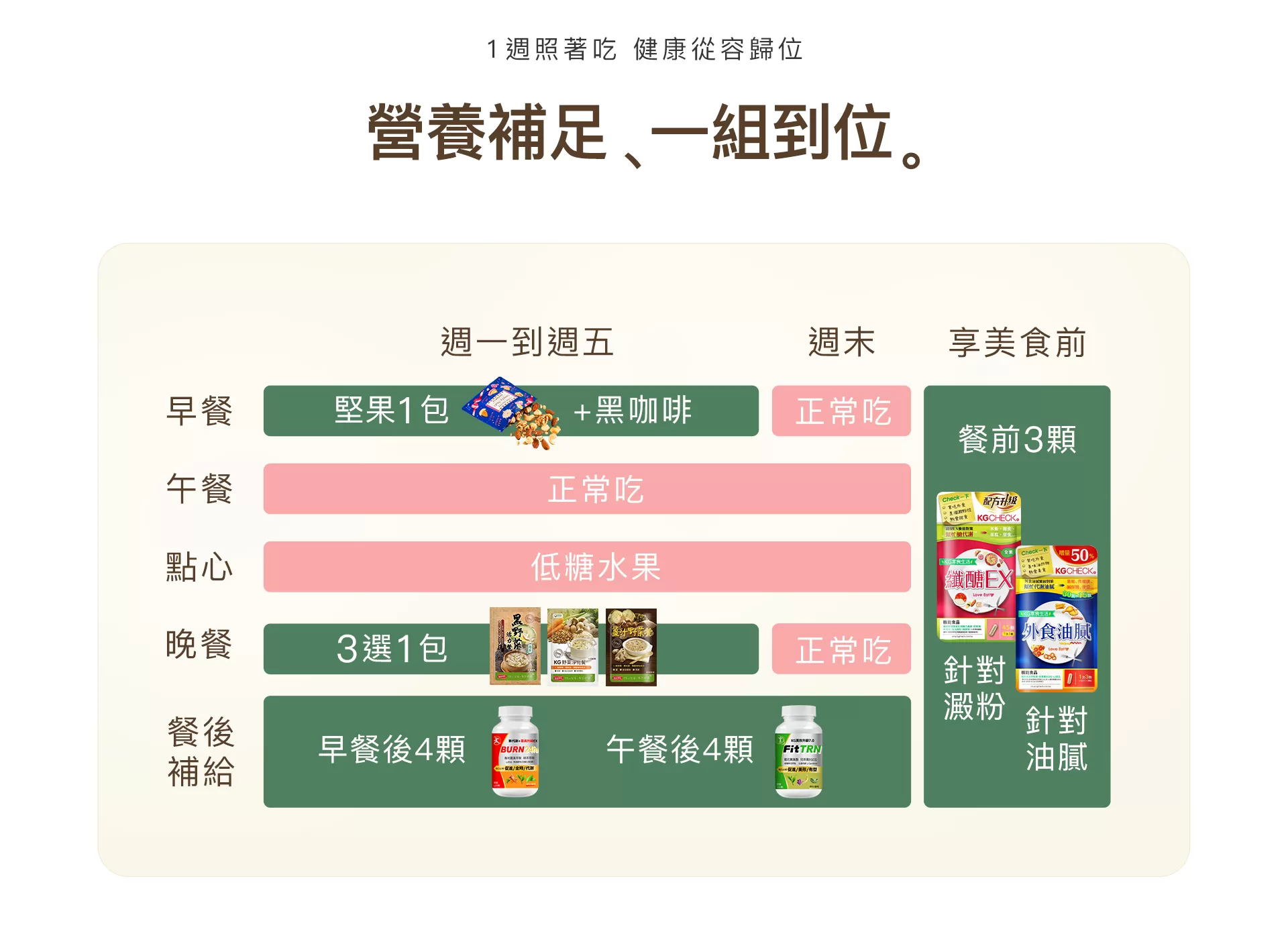 本組合共含 18包輕卡餐,約可供 每週5天的晚餐份量,您也可在本賣場以原價的 75折加購輕卡餐