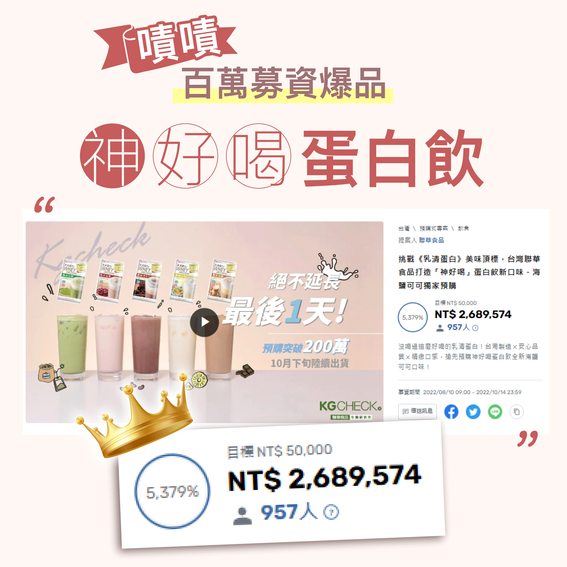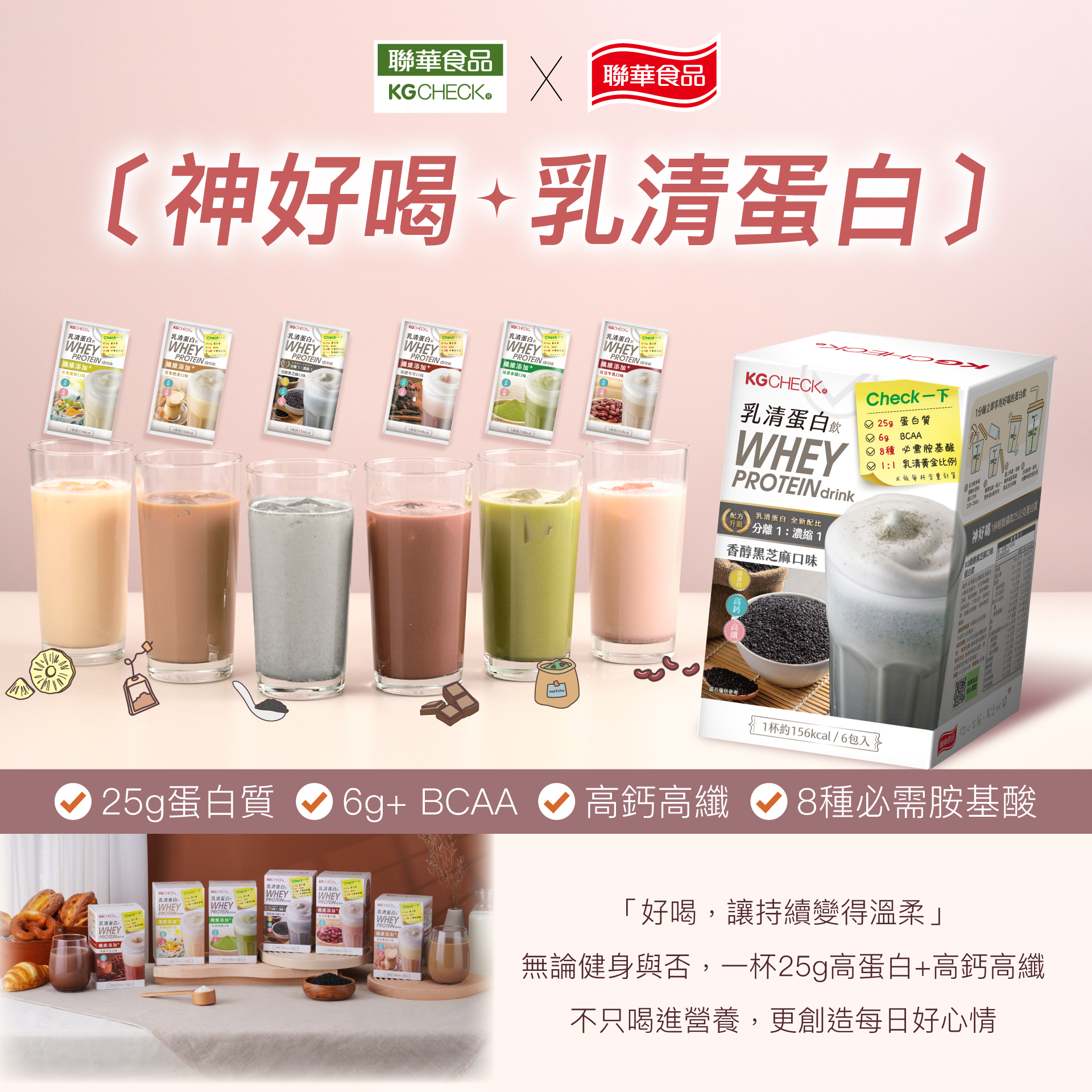 因此,攜手專業研發團隊&聯華食品的專業生產線,專注於打造市面上沒見過的、超好喝的乳清蛋白飲!