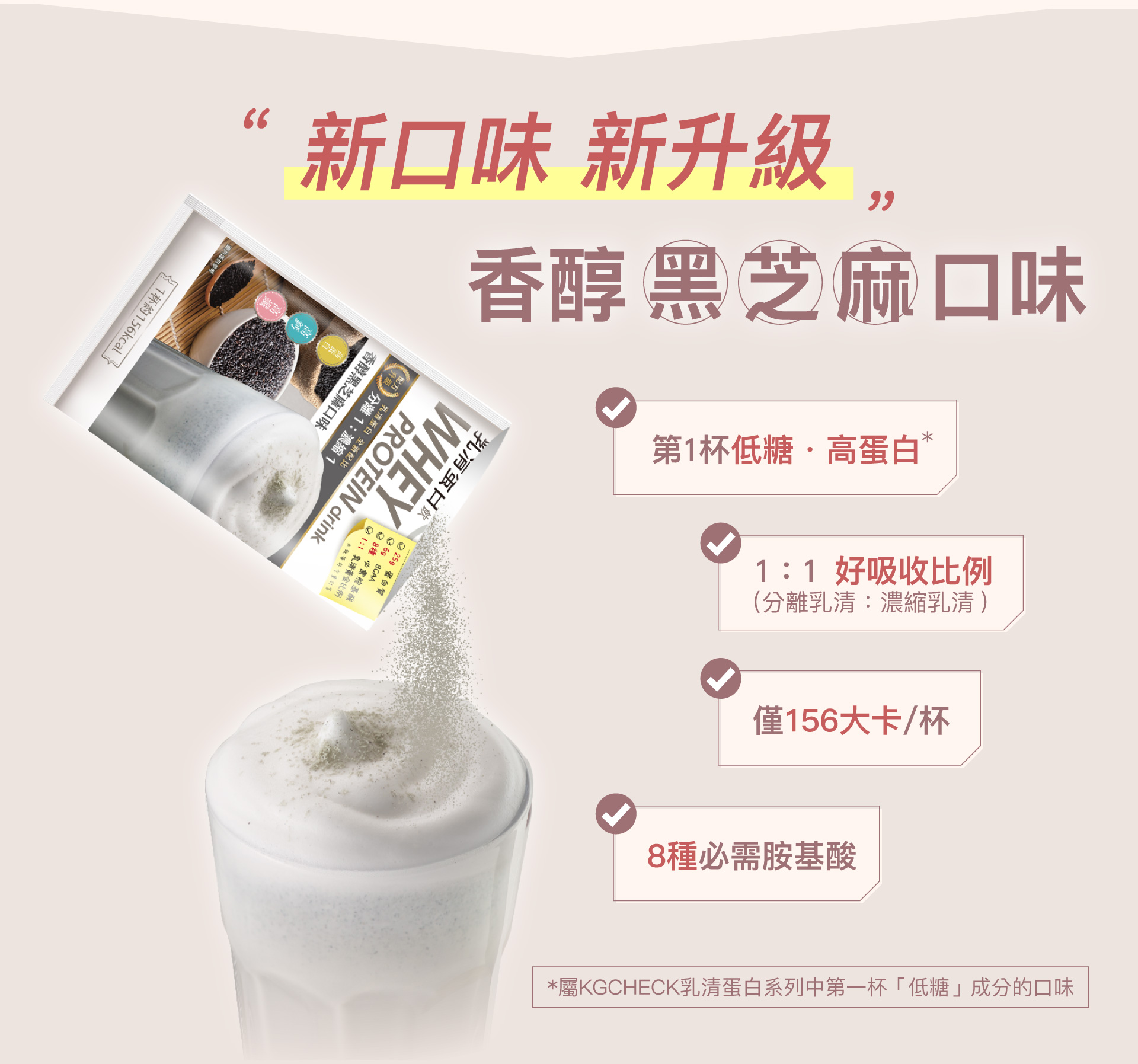 乳清蛋白飲-香醇黑芝麻口味(41g) | KGCHECK聯華食品生醫研究室