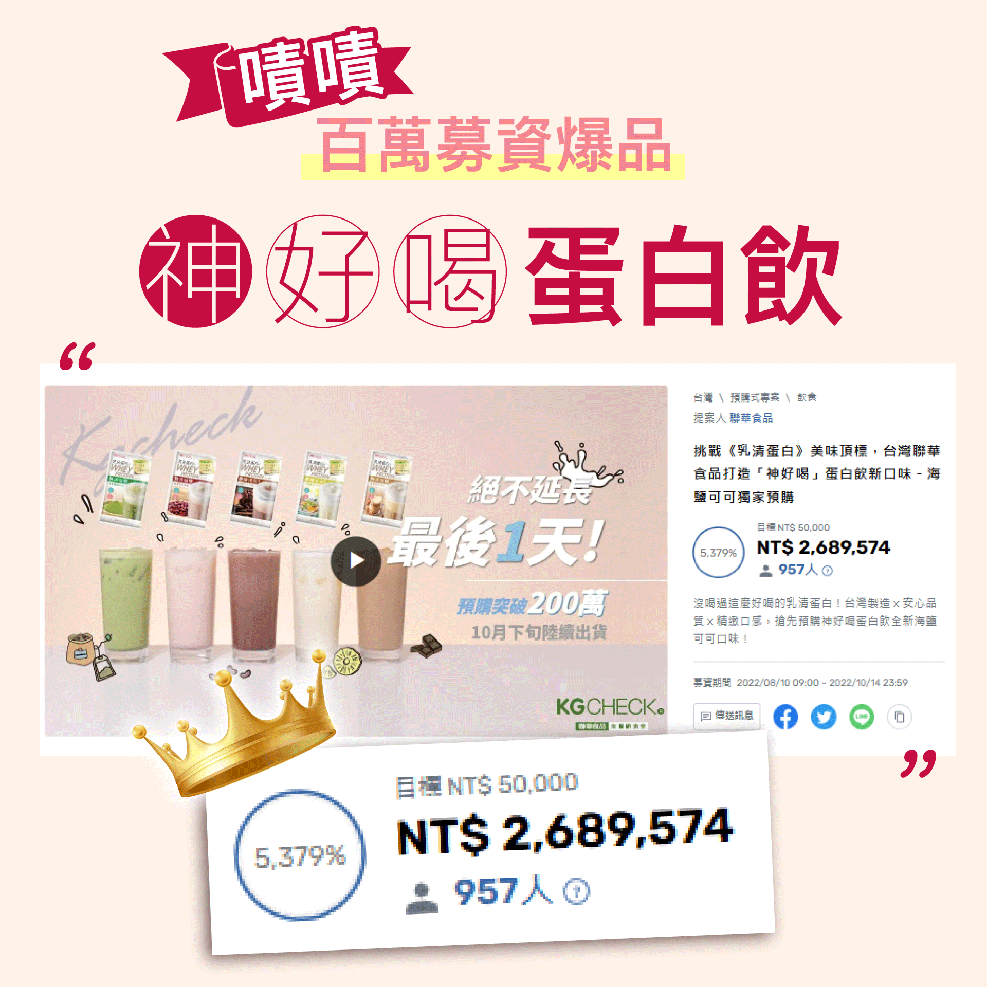 因此,攜手專業研發團隊&聯華食品的專業生產線,專注於打造市面上沒見過的、超好喝的乳清蛋白飲!