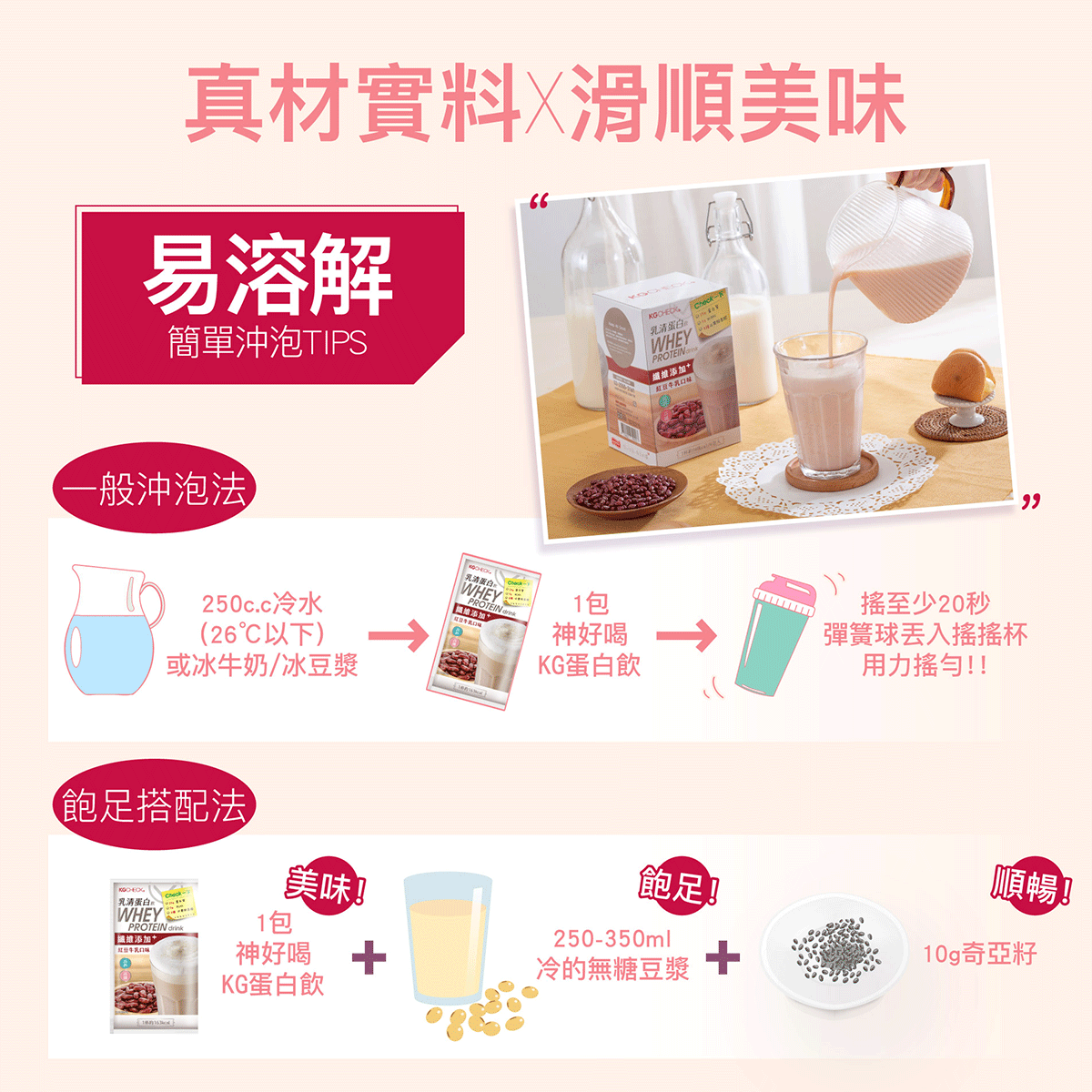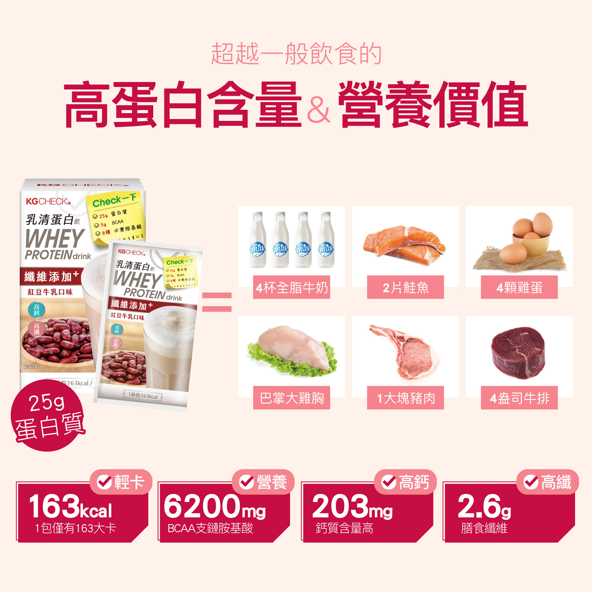 乳清蛋白飲-紅豆牛乳口味(43gx6包) | KGCHECK聯華食品生醫研究室